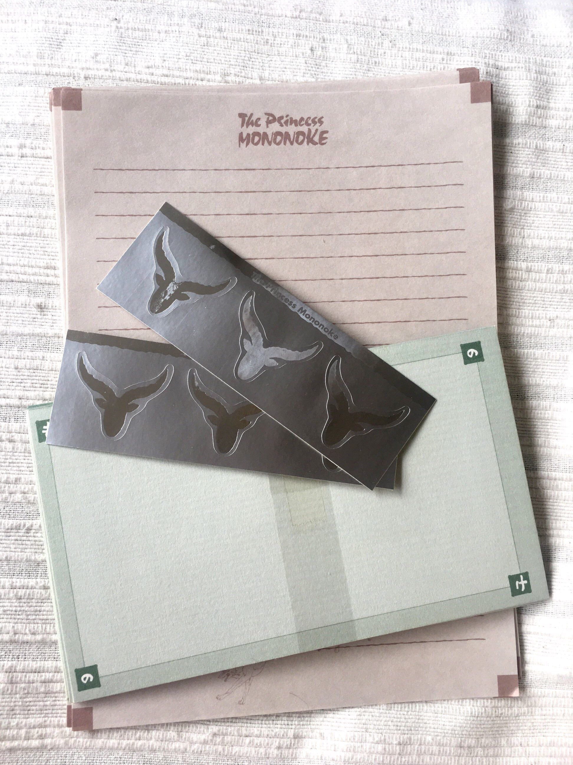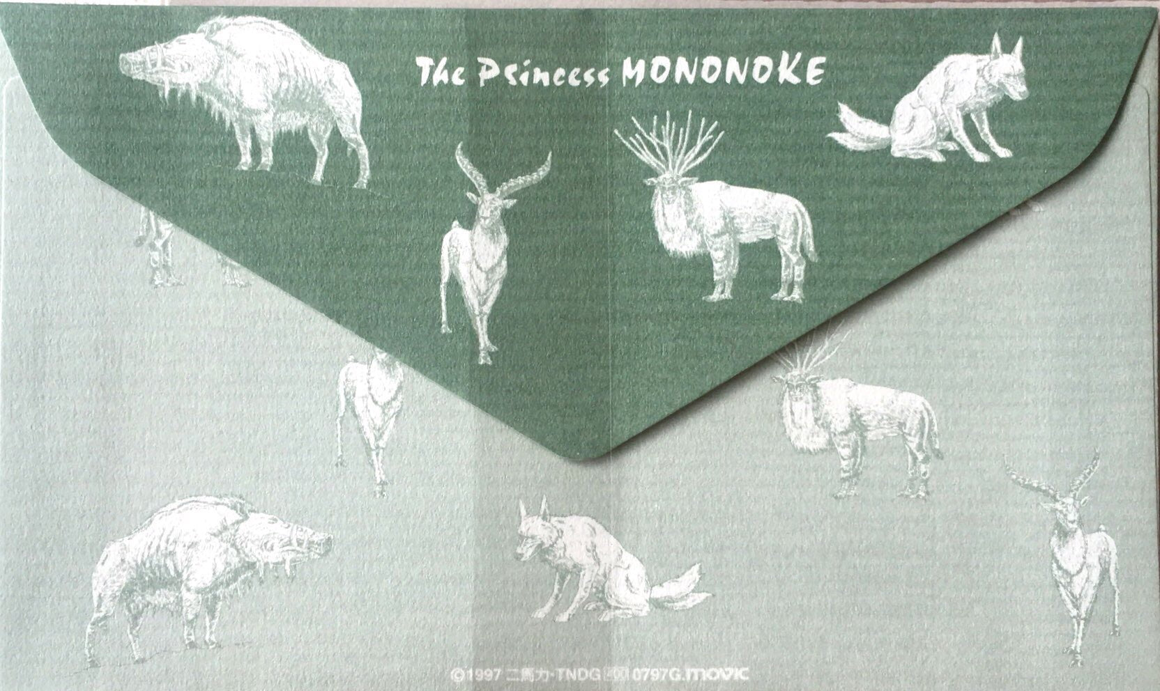 Simple but beautiful letter set inspired to the 1997 Japanese movie by Hayao Miyazaki. Includes 12 sheets, 6 envelopes and 6 seals.
