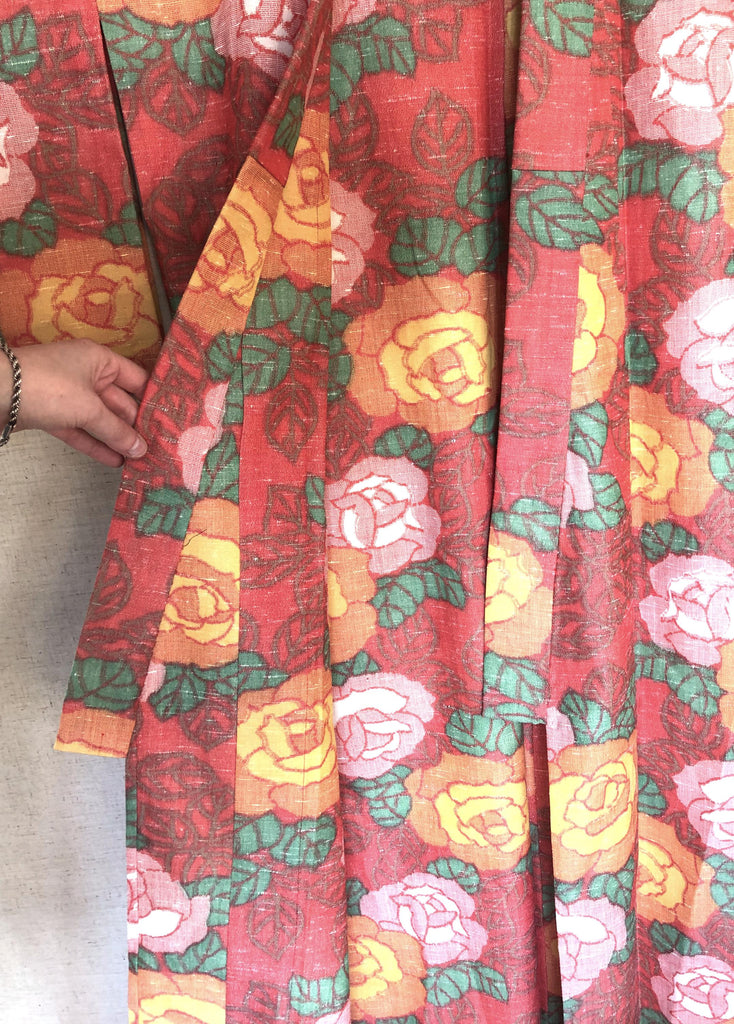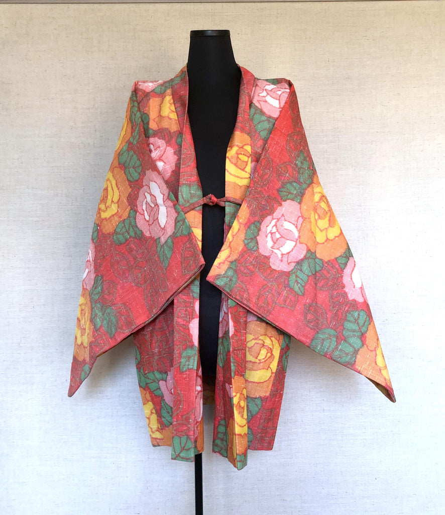 Cute kimono set - casual kimono and a matching haori - coral pink with roses