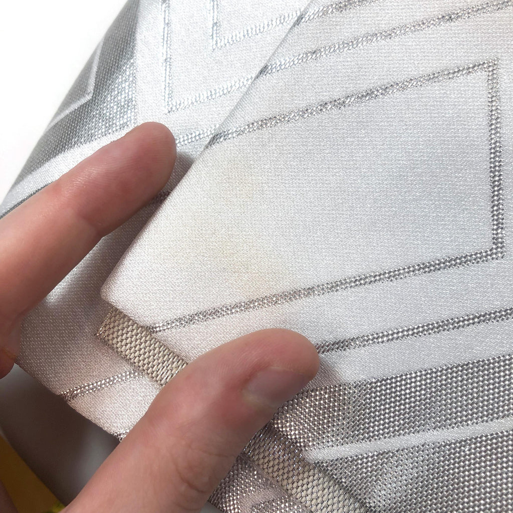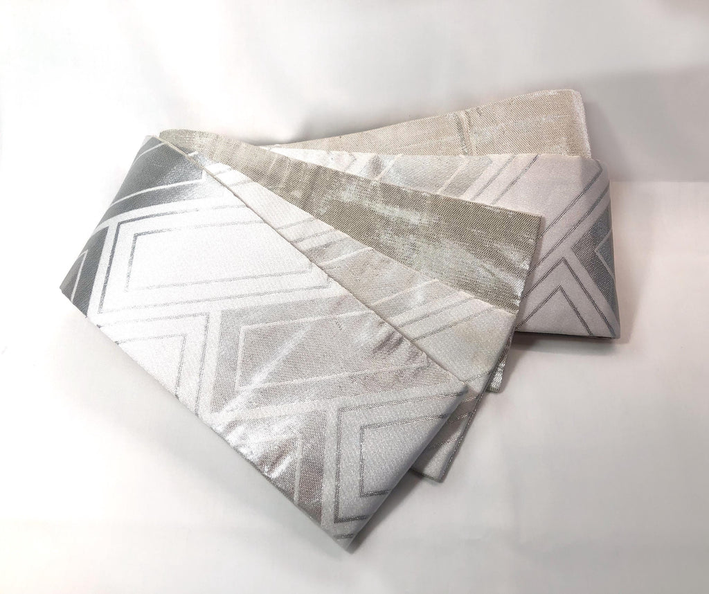 It is reversible - one side is white and silver, with an oversized basket weave pattern. The reverse is light silver. This obi will be perfect for a festival outfit or for a cosplay.