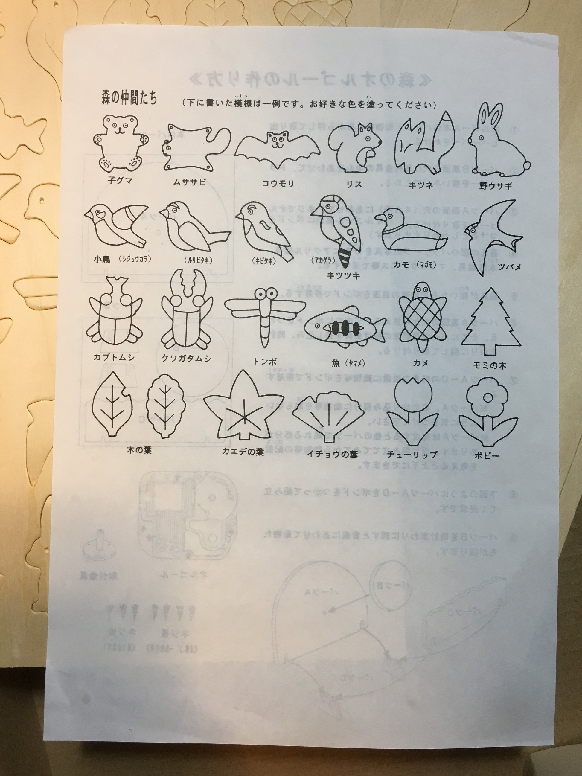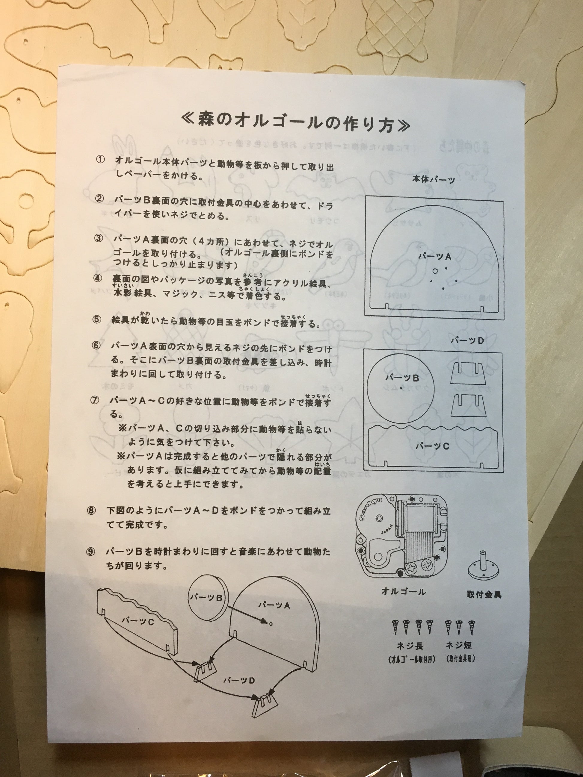 This is a kit to make a wooden music box, in the shape of a forest full of animals, which will turn around while the music is playing.