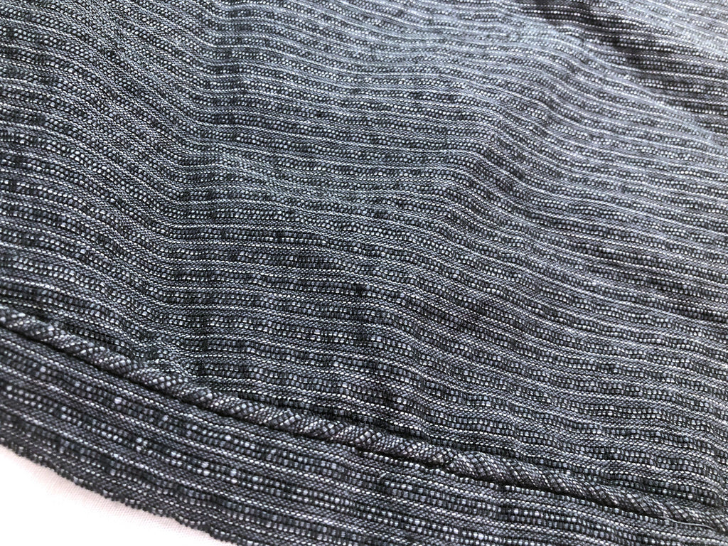 In the set is included a simple cotton kinchaku (drawstring bag) in a grayish dark blue color, with delicate lighter stripes.