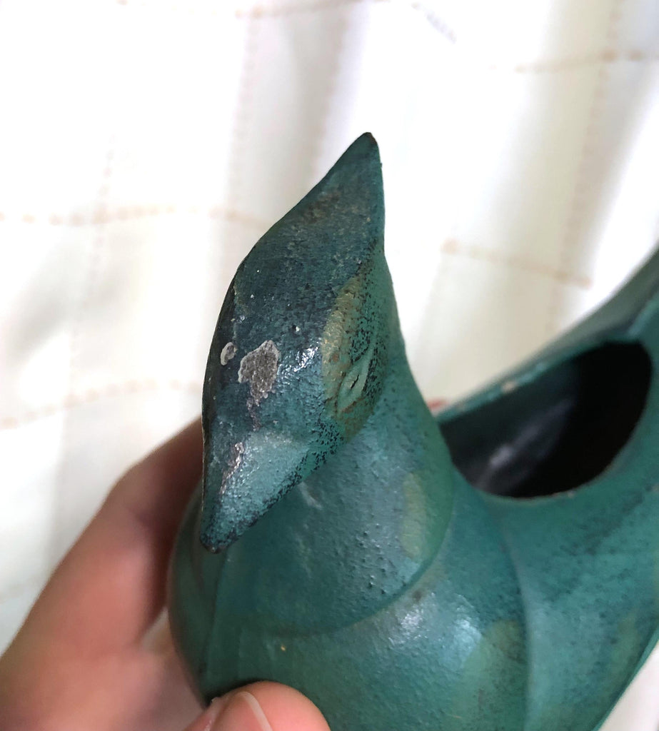 There are some signs of use -most noticeably, a chipped paint on the beak and near the opening on the back.