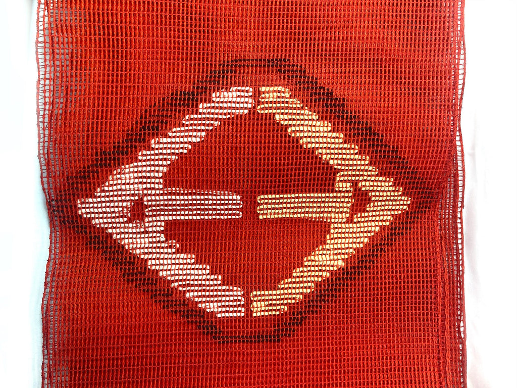 Japanese summer obi - vivid red wide mesh with abstract pattern