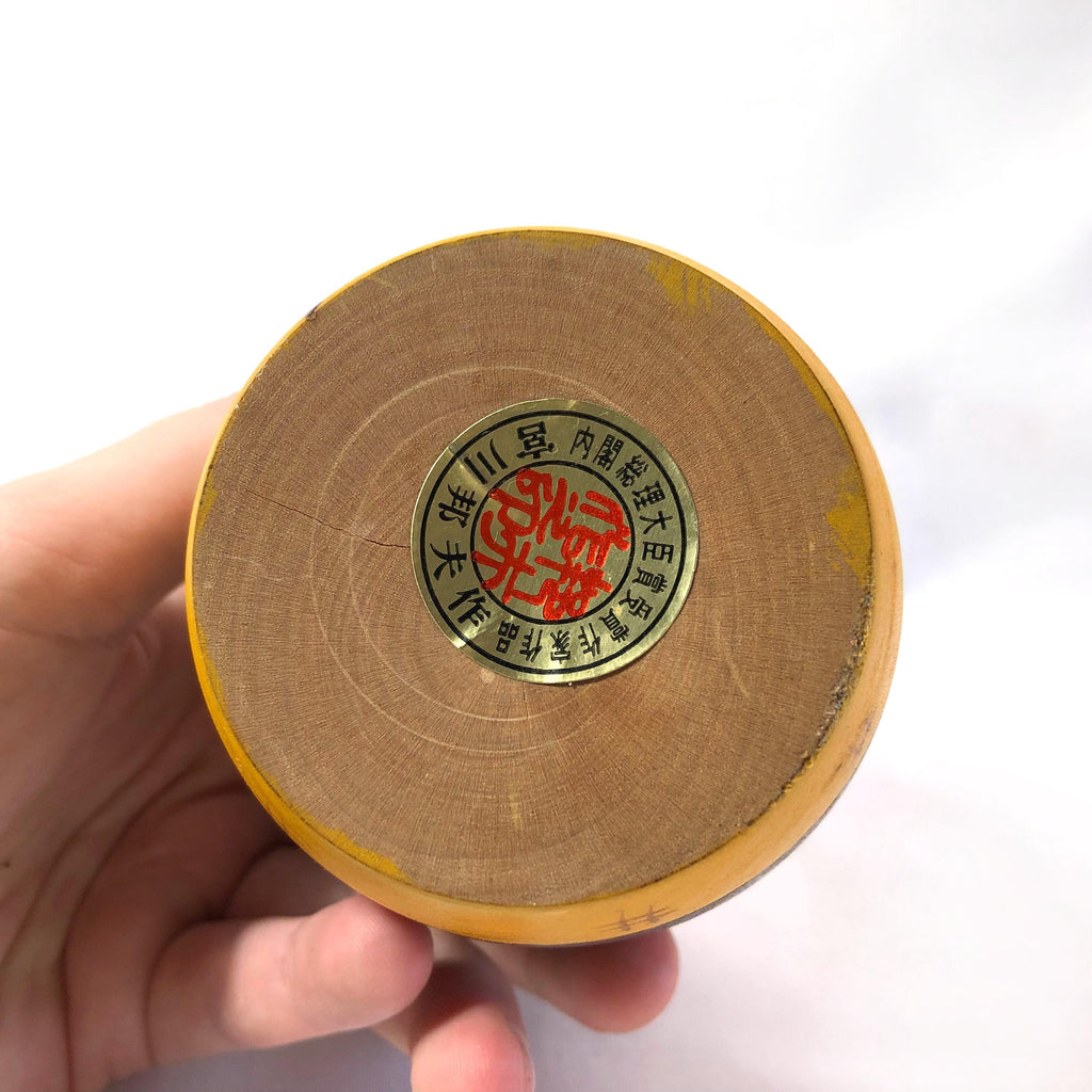 An adorable smiling kokeshi- traditional Japanese wooden doll.