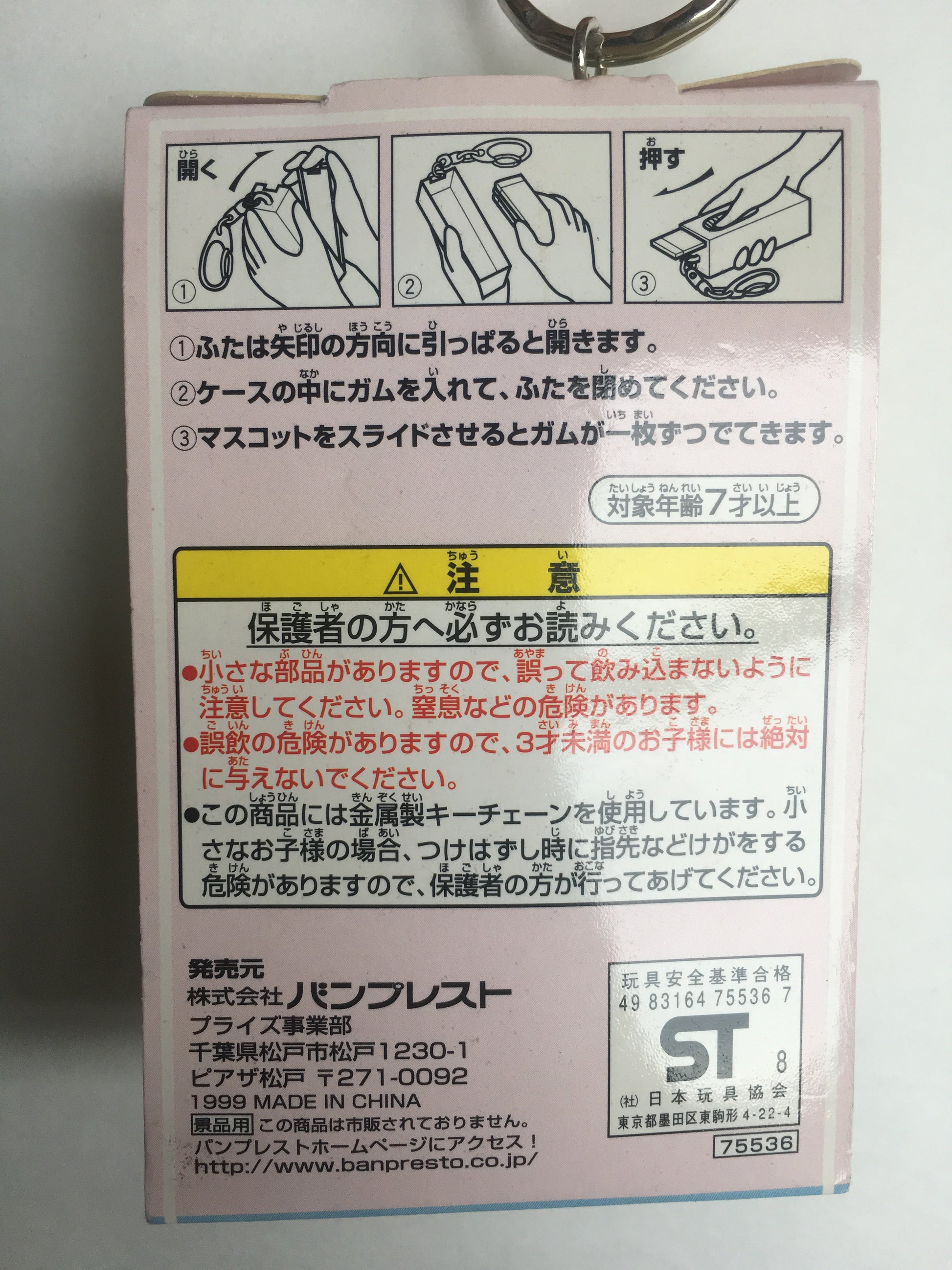 Chewing gum case in the shape of a keychain. From a series of 6 different models, you just need to slide the character to automatically extract a gum.