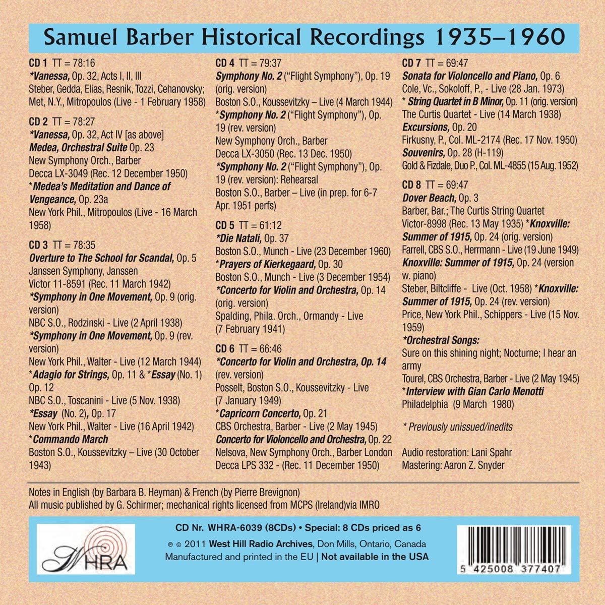 Samuel Barber: Historical Recordings 1935-1960 8+1 CD Box (includes a 9th CD)