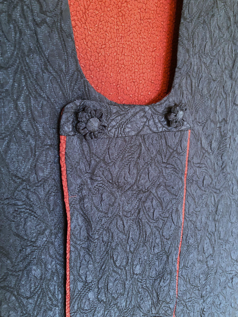 Vintage Japanese kimono coat michiyuki - elegant blue and red with floral buttons