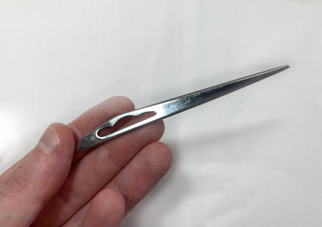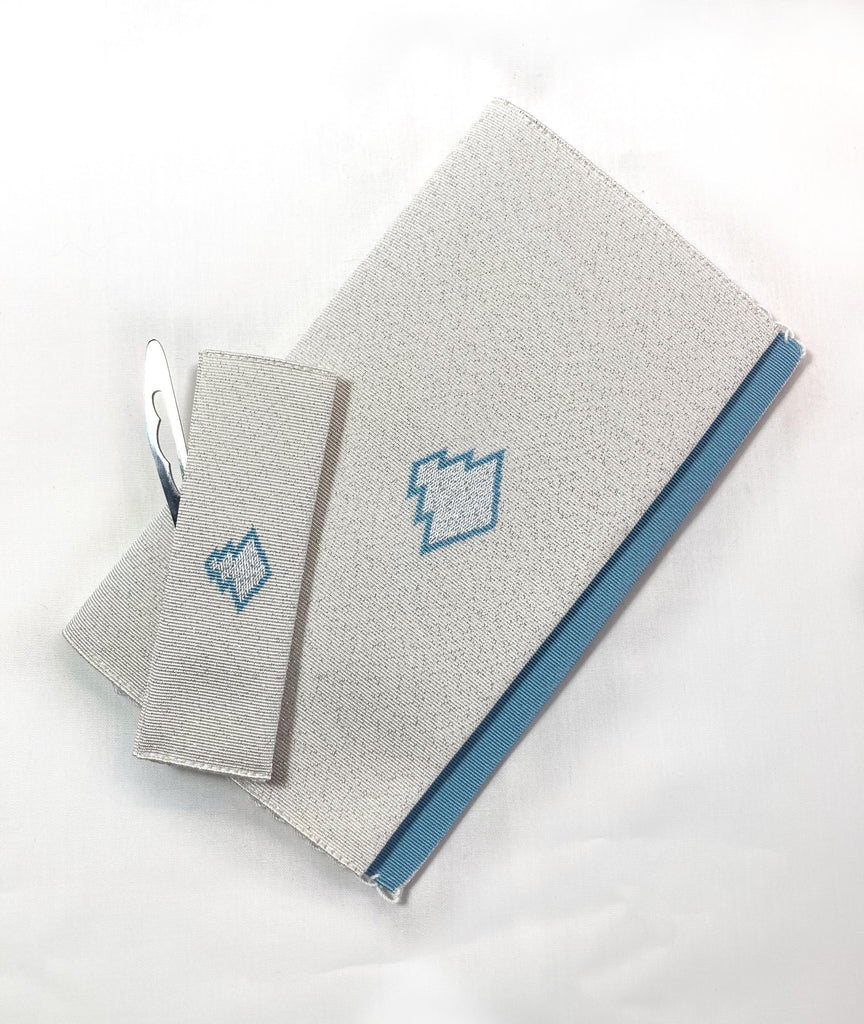 Vintage Japanese slim wallet /kaishi ire - light blue and silver with a matching food pick