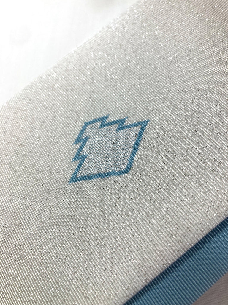 The wallet is made of a thin fabric with a ribbed texture, interlaced with a silver thread.