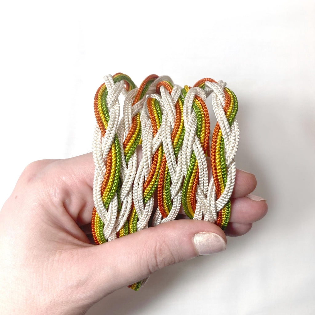 Vintage kimono accessories set - light yellow obiage and colorful mix obijime