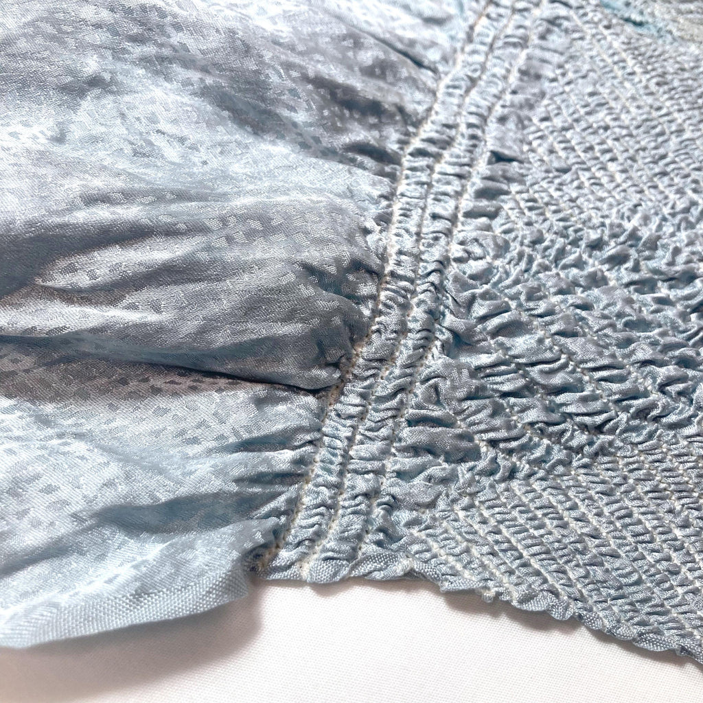 Vintage kimono accessories set - powder blue obiage and pastel-gold obijime