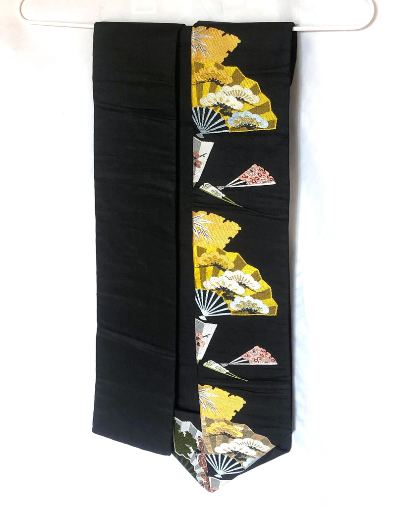 Vintage Nagoya obi - paper fans with "shōchikubai" pattern