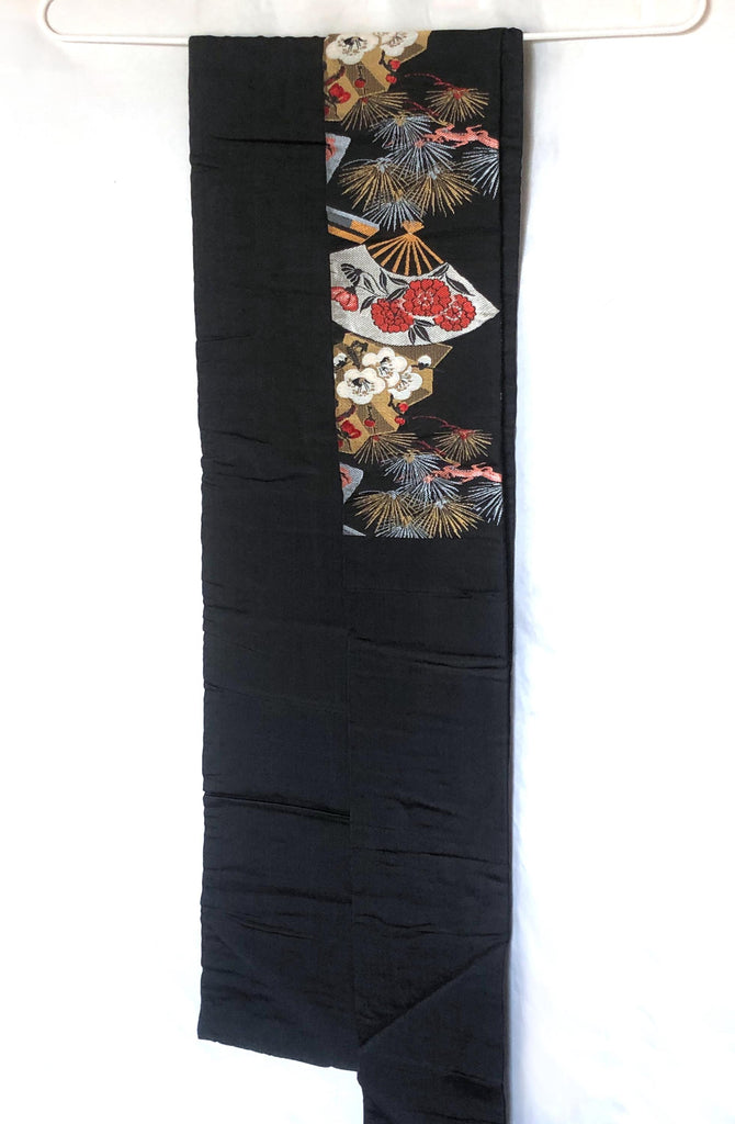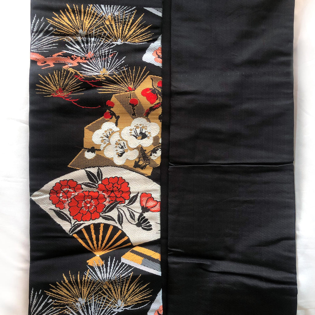 Vintage Nagoya obi - paper fans with floral pattern