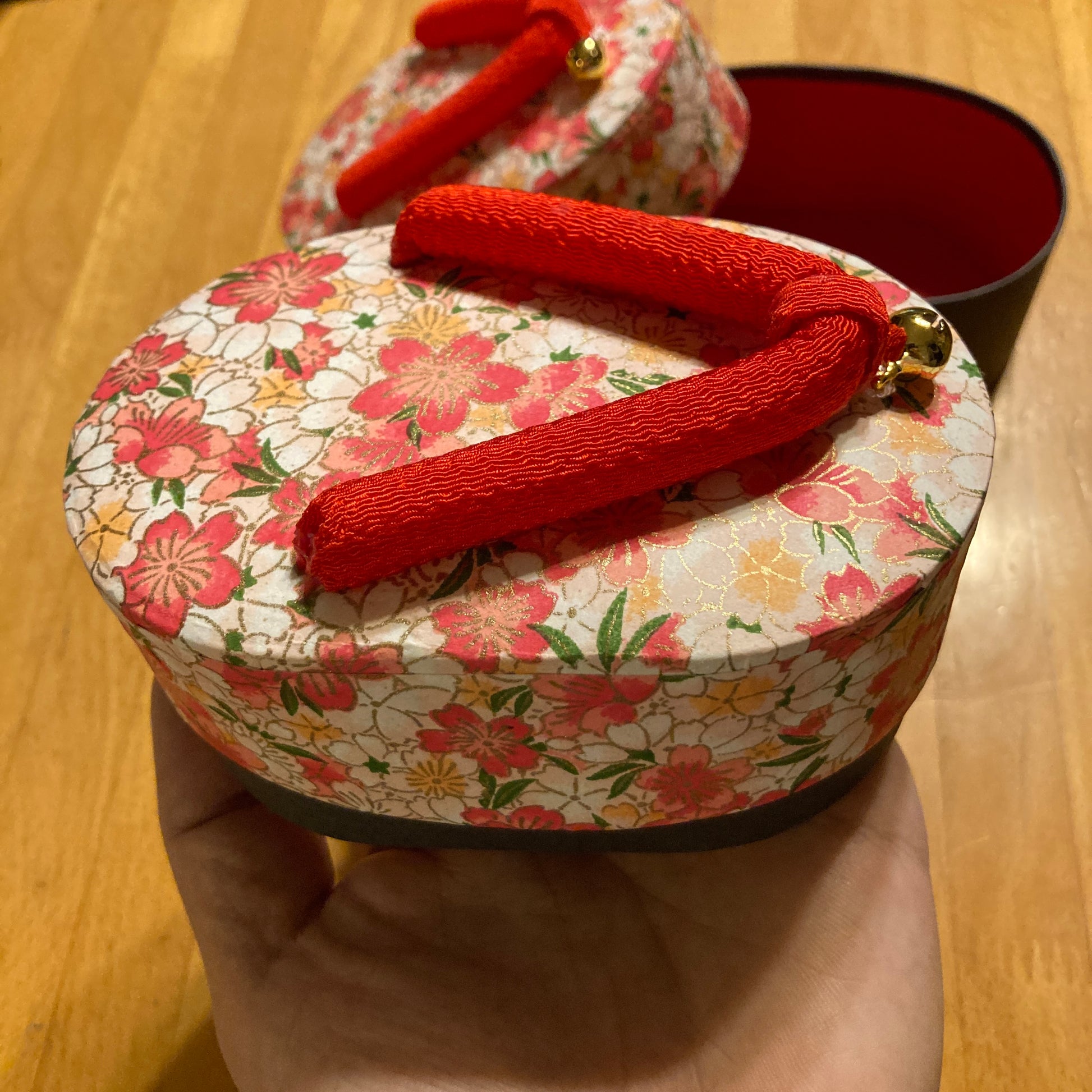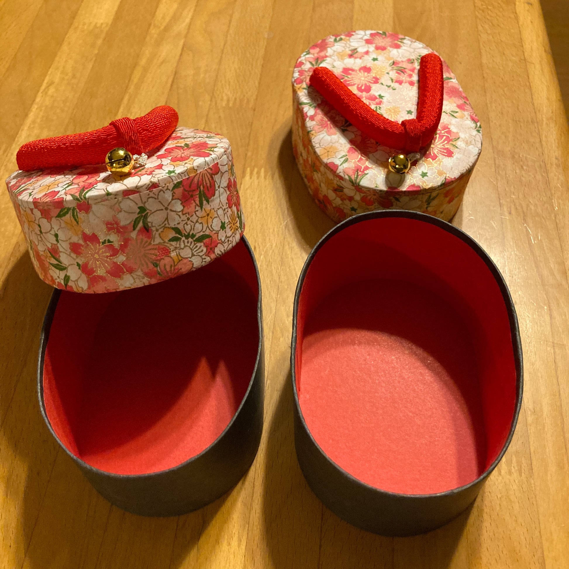 Shaped like a pair of cute zōri (traditional Japanese shoes), you can use these boxes to keep small objects or accessories. Made of thick paper, therefore very light and delicate.